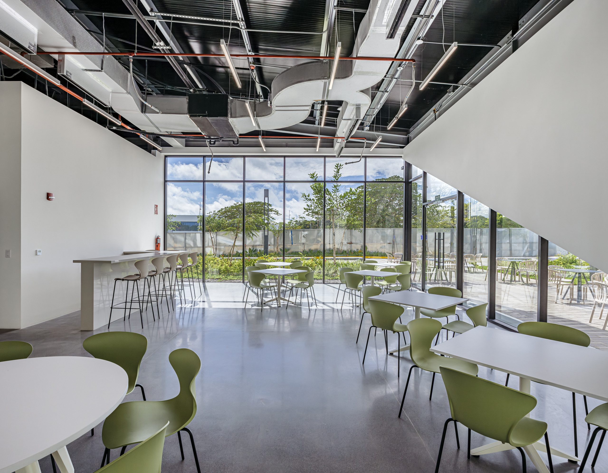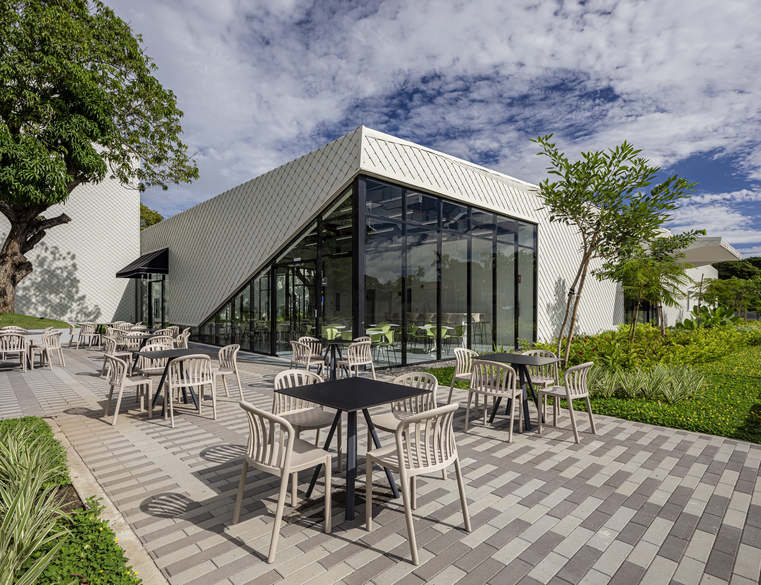 Amueblamiento de las áreas de cafetería, tanto interiores como exteriores, con mobiliario resistente a la intemperie. Se diseñó también el mobiliario de la biblioteca del museo, seleccionando materiales y colores que armonizan con el entorno natural y arquitectónico del espacio.